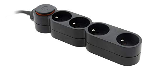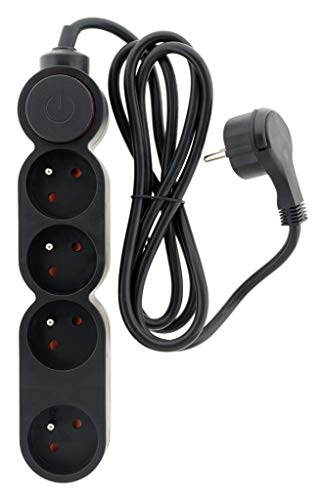 Home - Ciabatta, 4 prese da 16 A + interruttore, cavo HO5VVF 3G1 1,5 m, con spina ultra piatta, colore: nero