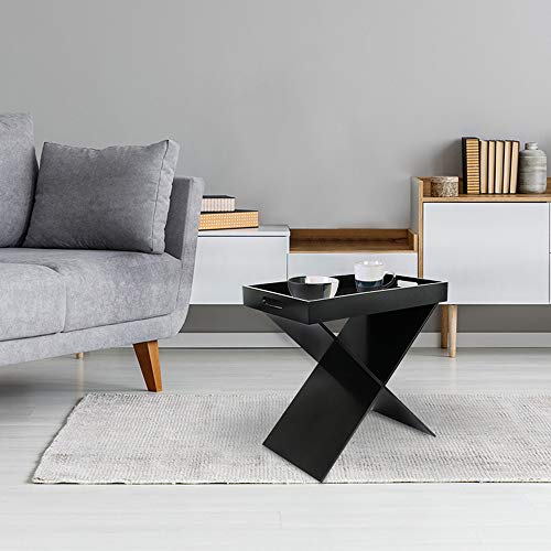 Home Deco Factory Tavolino, Polyester, Nero, 46 x 48.5 x 32 cm