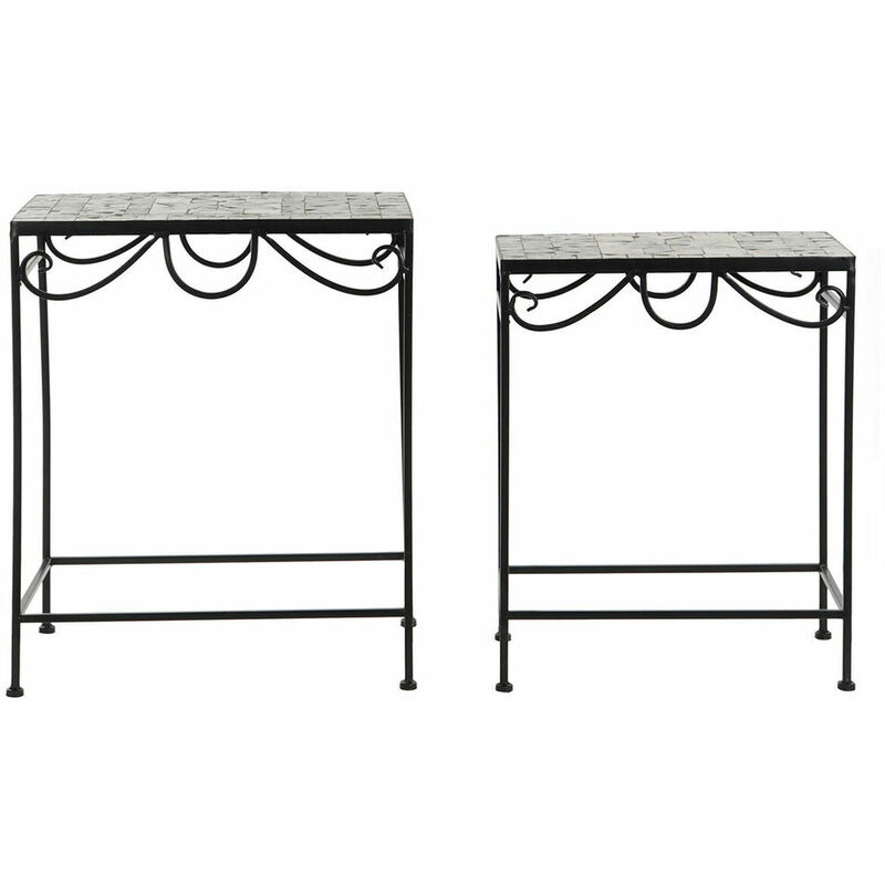 Se vuoi dare un tocco d'originalità alla tua casa, con Set di 2 tavoli DKD Home Decor Ceramica Nero Forjare (2 pcs) (48 x 30 x 58 cm) potrai farlo. Tipo Giardino Colore Nero Materiale Ceramica, Forjare Pezzi 2 pcs Design Mosaico Dimensioni appross. 48 x 30 x 58 cm