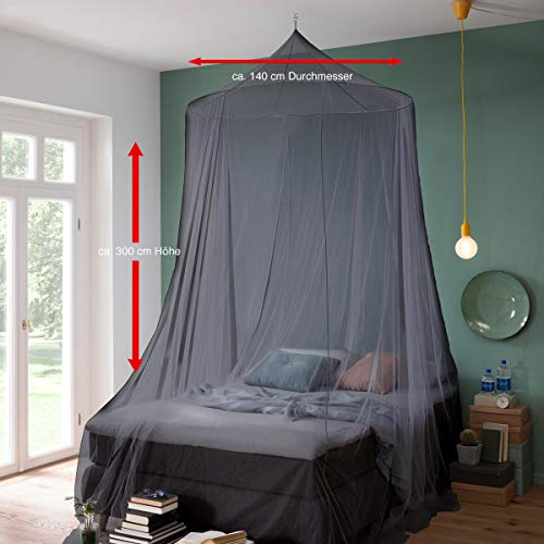 Zanzariera Home nera per letto matrimoniale, con anello di bloccaggio extra large per la casa, protezione ideale contro mosche, insetti, zanzare