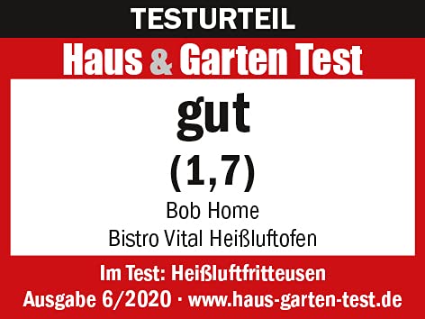 BOB HOME Forno ad aria calda BISTRO VITAL - Friggitrice ad aria calda, essiccatore, grill, tamburo, senza grassi aggiuntivi, 1800 Watt, volume 12 litri, 8 programmi, finestra