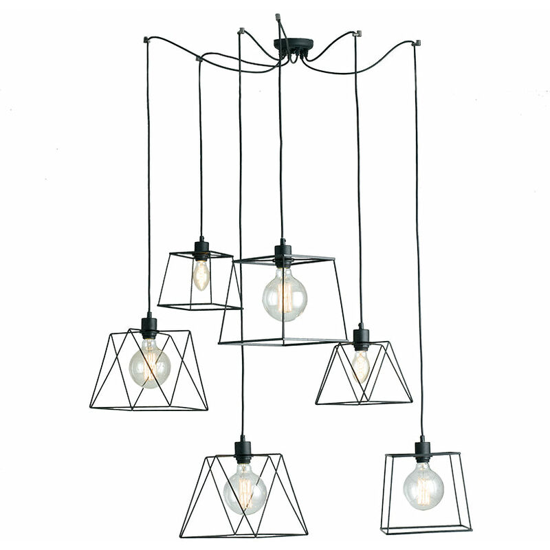 Lampadario 6 luci NULKI nero • struttura in metallo verniciato nero opaco • attacco in metallo verniciato nero opaco • predisposto per nr.6 lampadine E27 max 40W (non in dotazione) • dimensioni cm. L20 P.20 H.250
