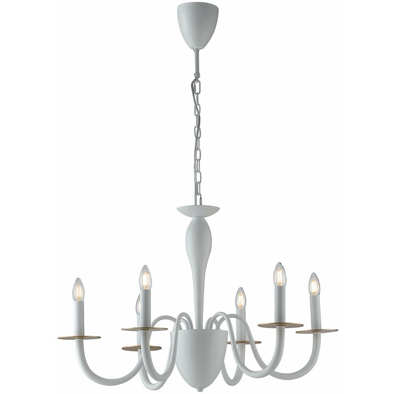 Lampadario 6 luci ZAMA bianco • catenella in metallo bianco • nr.6 paralumi in metallo bianco • predisposto per nr.10 lampadine E27 max 40W (non in dotazione) • dimensioni cm. L53 P.53 H.78
