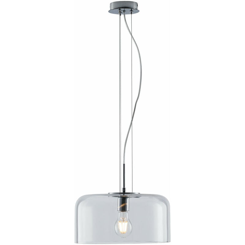 Lampadario MOOSE trasparente • filo in metallo • paralume in vetro trasparente • attacco in metallo verniciato colore grigio opaco • predisposto per nr.1 lampadina E27 max 40W (non in dotazione) • dimensioni cm. L35 P.35 H.150