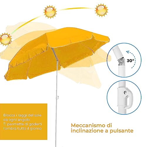 HOME KOKO LOOK SET di OMBRELLONE da Spiaggia Inclinabile 200CM + APPENDIABITI + SACCA PVC, Obrellone da Balcone/Giardino/Terrazzo/Piscina/Pesca Esterno Antivento Portabile - Giallo