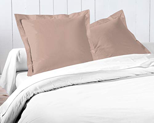 Home Linge Passion - Lot de 2 Taies d'oreiller 100 % coton 63 x 63 cm Finition Oxford (Volant Plat Piqué) - Rose Poudré