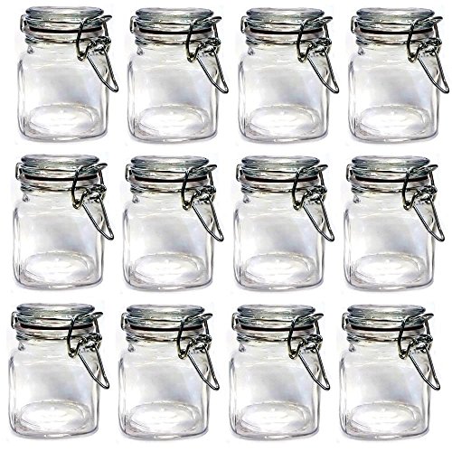 Gr8 Home - Set di 12 Mini barattoli in Vetro con Chiusura a Clip, per Conserve, marmellata, Alimenti, Erbe aromatiche (Trasparente)