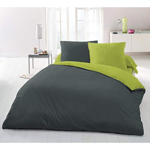 Home Passione 61201 Parure Copripiumino Matrimoniale 3 pezzi Microfibra Grigio Scuro/Anice 240 x 220