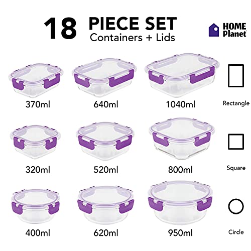 Home Planet Contenitori Alimentari Vetro | Contenitori Vetro | 18 pezzi | Coperchi aggiornati | Nessun imballaggio in plastica | Senza BPA | Contenitori In Vetro Per Alimenti