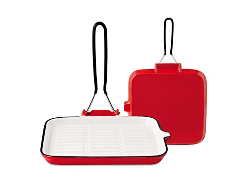 Home in Rombo Home Bistecchiera Ghisa SM Quadrato Cm22 Pentole E Preparazione Cucina, Bianco/Rosso, 22 cm