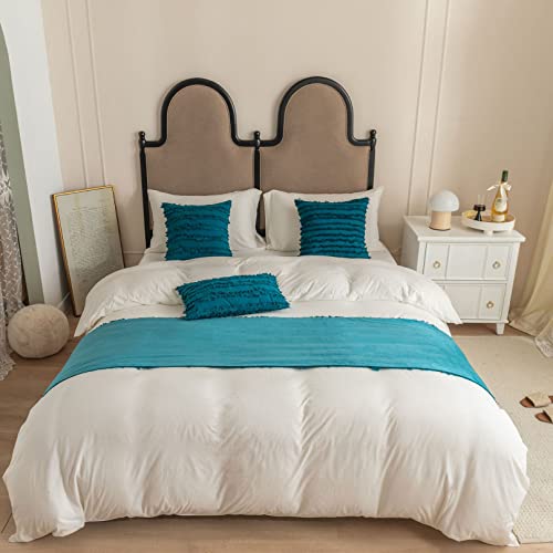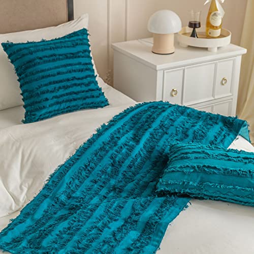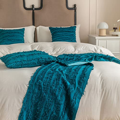 Home - Runner da Letto per Letto Trapuntato Sciarpe in Jacquard con Nappa in Cotone e Lino Tinta Unita per Letto Matrimoniale Letto Matrimoniale Letto Matrimoniale King Size, Azzurro Cielo