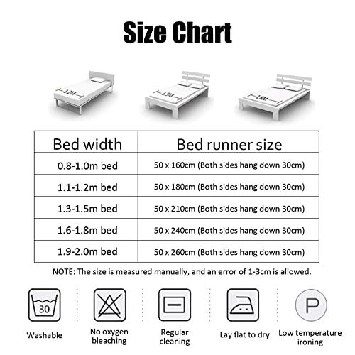 Materiale: dimensioni e confezione: runner da letto e sciarpe realizzati in tessuto di poliestere. Confortevole, durevole e resistente allo sbiadimento. 3 misure disponibili: 45 x 180 cm per letto da 150 cm, 45 x 210 cm per letto da 180 cm, 45 x 240 cm per letto da 200 cm. Confezione: 1 runner da letto (federa non inclusa). Nota: runner da letto, cuscini e federe devono essere ordinati separatamente. Non sono venduti in kit