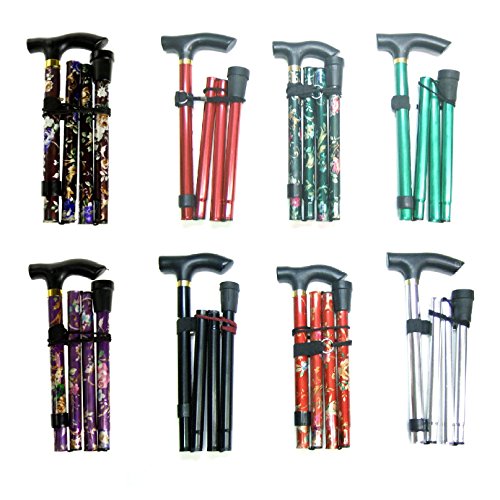Home Smart Easy Fold Walking Stick Adjustable - Lightweight Aluminium Folding Walking Cane - Color: Green Flower by SmartHome