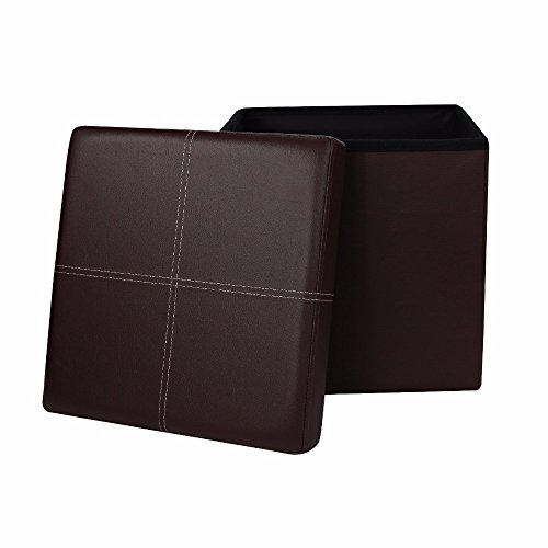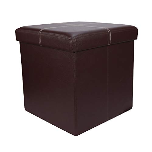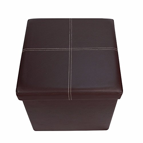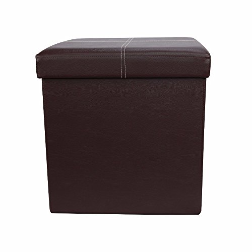 Home Source - Cassapanca ottomana pieghevole in ecopelle, robusta, salvaspazio, Marrone, small