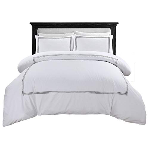My Home Store Set di biancheria da letto king size di qualità alberghiera, set copripiumino super morbido, traspirante, 100% policotone, con federe (bianco)