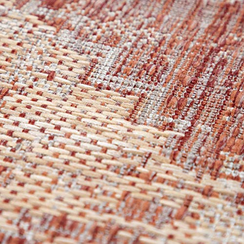 TT Home Tappeto per Interni ed Esterni, per Balcone e terrazza, dal Design Orientale, in Rosso, Dimensione:160x220 cm