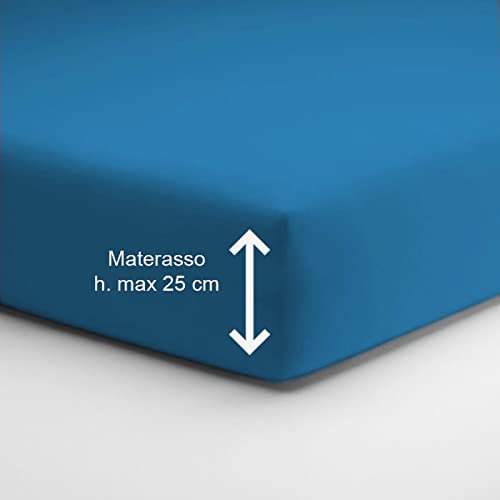 Home Tresor - Lenzuolo Sotto Matrimoniale con Angoli Elasticizzati, cm. 180x200 h. Materasso 25, 100% Puro Cotone, Prodotto Italiano, Color AVIO