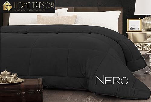 Home Tresor - Trapunta Invernale Calda e Morbida, Piumone Pesante 540 gr./mq in Microfibra Manopesca Anallergica Traspirante, Nero, Singolo cm. 180x260