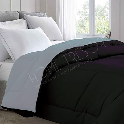 Home Tresor - Trapunta Matrimoniale Invernale Double Face con Imbottitura in Morbida Microfibra Anallergica e Traspirante da 350 gr/mq Judit 2 Piazze cm. 260x260 (Nero/Grigio Scuro)