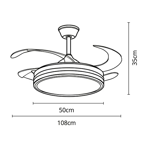 BEL AIR HOME - Ventilatore da soffitto Cocon motore DC con pale pieghevoli con luce LED 36 W (3000 K, 4000 K, 6500 K) con telecomando incluso (bianco) (Nichel)
