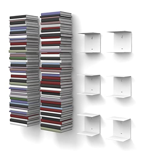 Home3000-6 Mensole libreria, Invisibili, Colore: Bianco, con 12 Scomparti, Altezza:Fino a 300 cm, per Mettere i Libri in pila, per Libri con profondità Fino a 22 cm