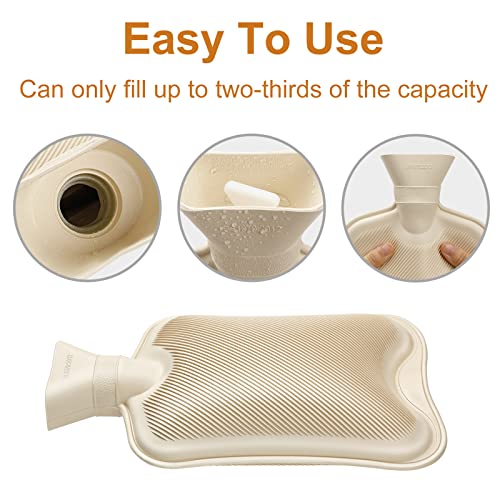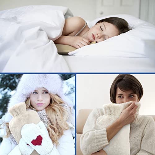 Homealexa Borsa dell'Acqua Calda, cata con Custodia Peluche Morbida 2L Boule Acqua Calda in Gomma Naturale Beige