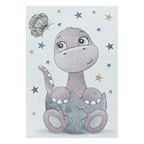 HomebyHome Tappeto per Bambini Tappeto Cameretta Bambino Disegno Dino Rosa 120x170 cm - Tappeto Pelo Corto Tappeto Camera Ragazzo - Tappeto Camera dei Bambini Sala Giochi Tappeto Cameretta Bambina