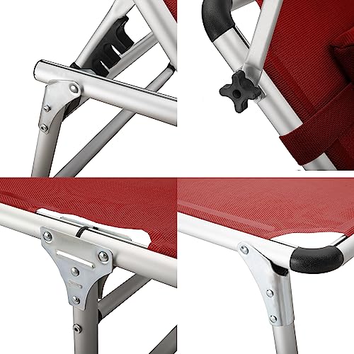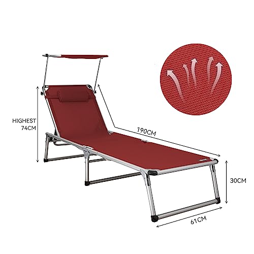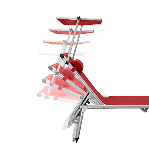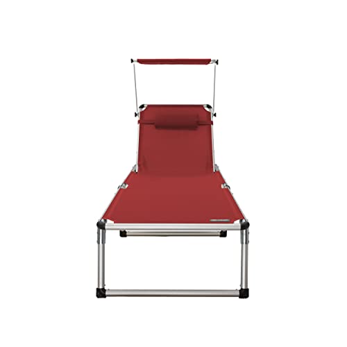 Homecall Lettino Pieghevole In Alluminio Con Parasole, Rosso, 190 x 61.5 x 74 Cm