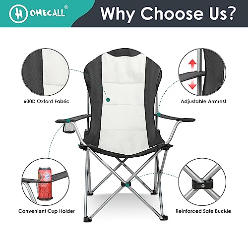 Homecall Sedia pieghevole da campeggio con braccioli e portabevande colore nero/crema