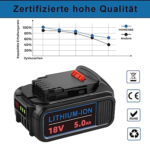HOMEDAS DCB200 - Batteria di ricambio per DeWalt, 5,0 Ah 18 V XR Li-ion, DCB180, DCB181, DCB182, DCB184, DCB201, 18 V, compatibile con tutti gli strumenti DeWalt da 18 V