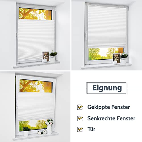 HomeDemo, Tenda avvolgibile plissettata senza viti, colore: bianco, Poliestere, bianco, 40 x 130 cm (BxH)