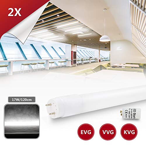 HOMEDEMO Tubo Neon Led Lampadine T8 Fluorescenti Bianco Freddo 6000K 120cm 17W a Risparmio Energetico 2 Pezzi
