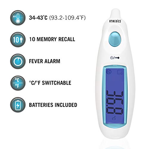 HoMedics Jumbo Display, Termometro Auricolare ad Infrarossi, Termometro da Orecchio con Allarme Febbre