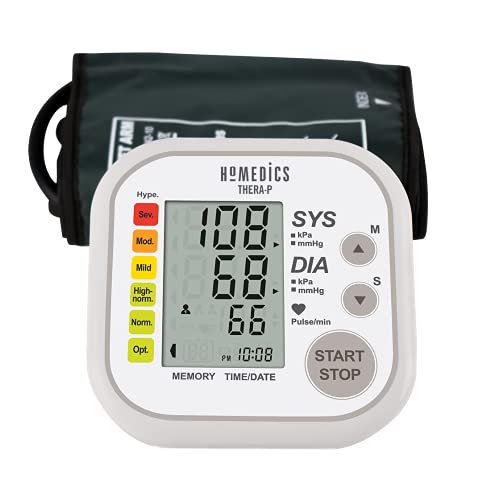 HoMedics TheraP Misuratore di Pressione Sanguigna Automatico, Misuratore da Braccio Semplice ed Intuitivo con un Display di Facile Lettura con Rilevamento del Battito Cardiaco Irregolare e 60 Memorie