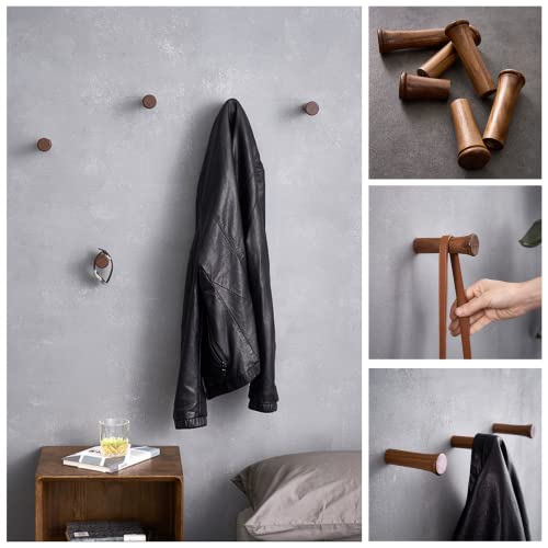 HomeDo Appendiabiti da Parete in Legno, con Ganci Decorativi in Legno a Forma di Fiocco, Stile Vintage (R3.5-Noce Nere 8 cm, set da 6)