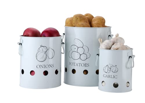 G.a HOMEFAVOR Contenitori per la Conservazione di Patate, Aglio, Cipolla, Frutta e Verdura in Metallo per la Cucina, Set da 3