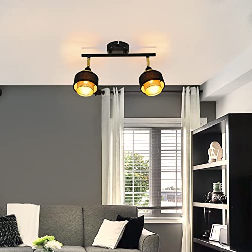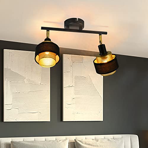 Homefire Plafoniera Nera Plafoniera Vintage - Plafoniera Soggiorno con 2 Lampadine E14 Retro Camera da Letto Faretti in Metallo Dorato Faretti Industriali Girevoli a Soffitto