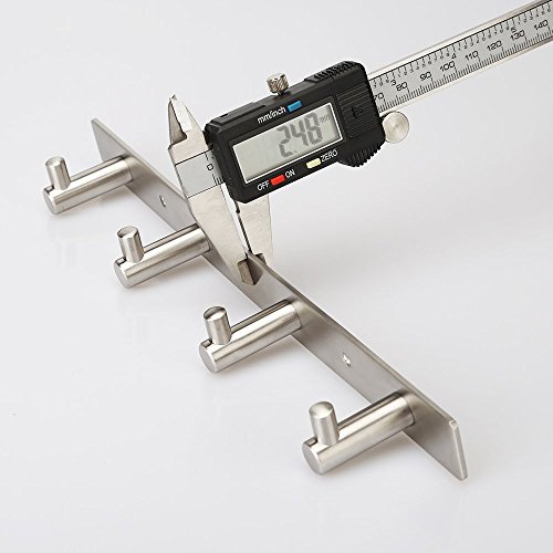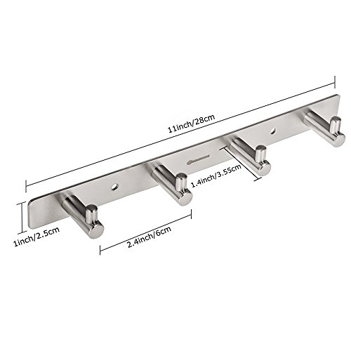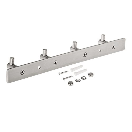 Homeideas, appendiabiti/attaccapanni da parete con 4 ganci per appendere abiti, asciugamani, cappelli, sciarpe, in acciaio inossidabile AISI 304 satinato (28 cm), Acciaio inossidabile, A-Silver, 4 Hooks