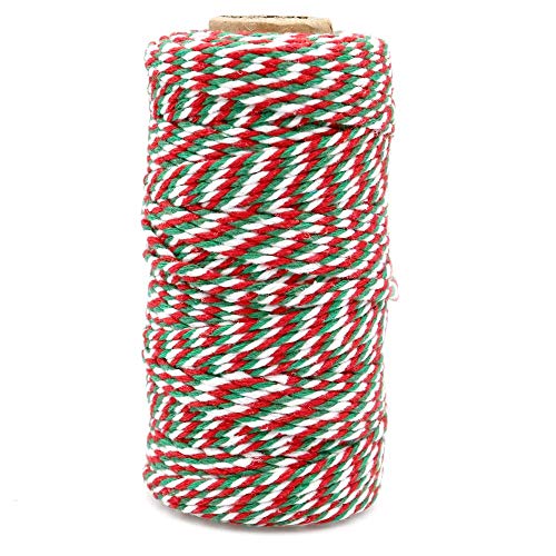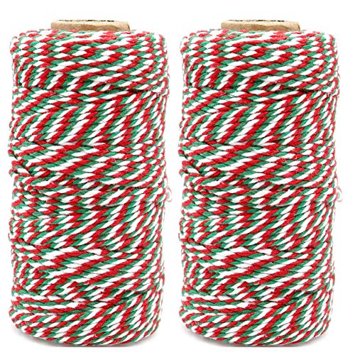 HOMEJIA - 2 rotoli di spago natalizio per cucina e fai da te, 200 metri di corda natalizia per lavoretti natalizi, etichette, lavori creativi e pacchi regalo rosso + verde + bianco