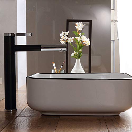 HomeLava Lavabo da appoggio per lavabo in ceramica con scarico valvola Corpo bianco Bordo nero (rubinetto non incluso) (38.5 * 38.5 * 14cm)