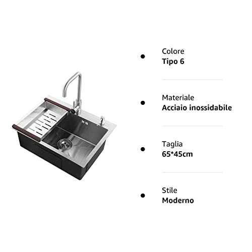 HomeLava Lavello in acciaio inox 304 Spazzola Vasca Singola lavello lavaggio lavandino 650 * 450mm,rubinetto non incluso