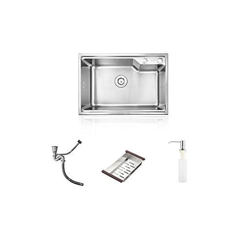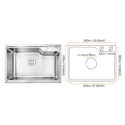 Homelava lavello singolo Bowl # 304 lavello in acciaio INOX spazzolato, montaggio a incasso con scarico basket 58 * 43 * 23cm (rubinetto non incluso)
