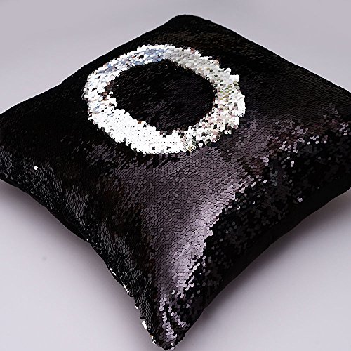 Homelavafans Copricuscino con paillette reversibili, due colori, 40 x 40 cm Black+Silver