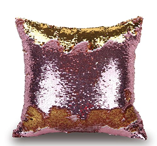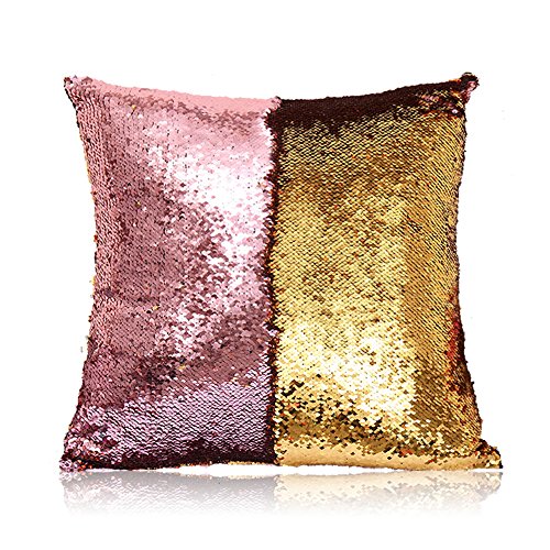 Homelavafans Copricuscino con paillette reversibili, due colori, 40 x 40 cm Pink+Golden