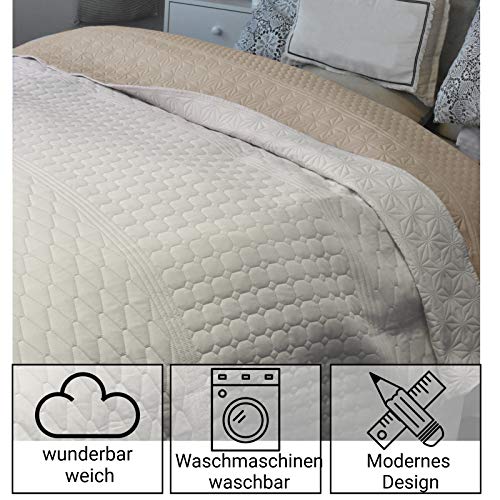 Questi splendidi copriletti reversibili sono caratterizzati dalle belle linee trapuntate e dai delicati colori a tinta unita. Il bellissimo look senza tempo delle coperte è un punto forte in ogni stanza e dona un nuovo accento. Il fantastico tessuto morbido ha un bell'aspetto grazie alla fantastica trapuntatura e al ripiano intermedio imbottito.