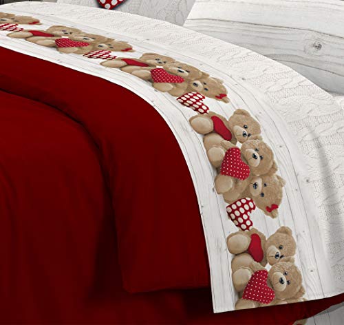 HomeLife Completo Lenzuola Letto Singolo Cotone Made in Italy | Completo Letto Singolo con Lenzuola Singolo Sopra, Lenzuolo con Angoli Singolo e Federe Cuscini Patella | Fantasia Orsacchiotti Rosso