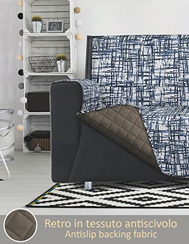 HomeLife Copri Divano 2 posti con Braccioli in Cotone Made In Italy | Telo Copridivano 2 posti Antimacchia e Idrorepellente | Telo Copridivano Due Posti Fantasia Colorata di Intrecci Blu
