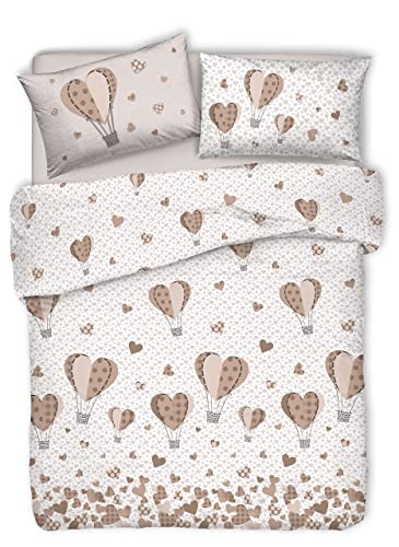 HomeLife: Copri Piumone Letto Matrimoniale Cotone Traspirante Made in Italy | Parure Copripiumino Letto Matrimoniale Colorato con Sacco Piumino Letto Matrimoniale con due Federe [Mongolfiera, Beige]