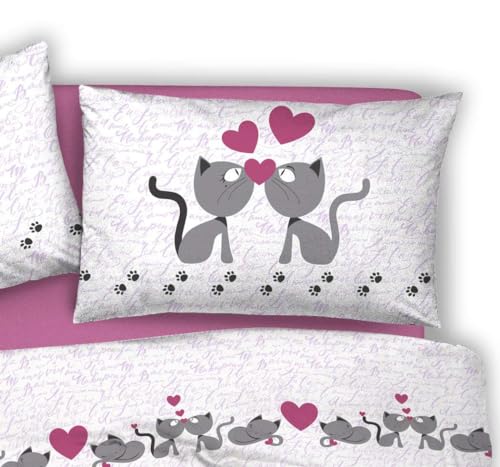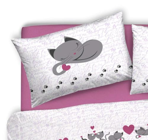 HomeLife: Copri Piumone Letto Matrimoniale Cotone Traspirante Made in Italy | Parure Copripiumino Letto Matrimoniale Colorato con Sacco Piumino Letto Matrimoniale con due Federe [Gattini, Rosa]