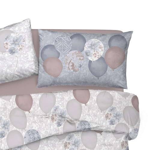 HomeLife: Copri Piumone Letto Singolo in Cotone Traspirante Made in Italy | Copripiumino Letto Singolo Fantasia: il Copripiumino Singolo Cotone con Federa per Un Sonno Riposante [Palloncini, Grigio]